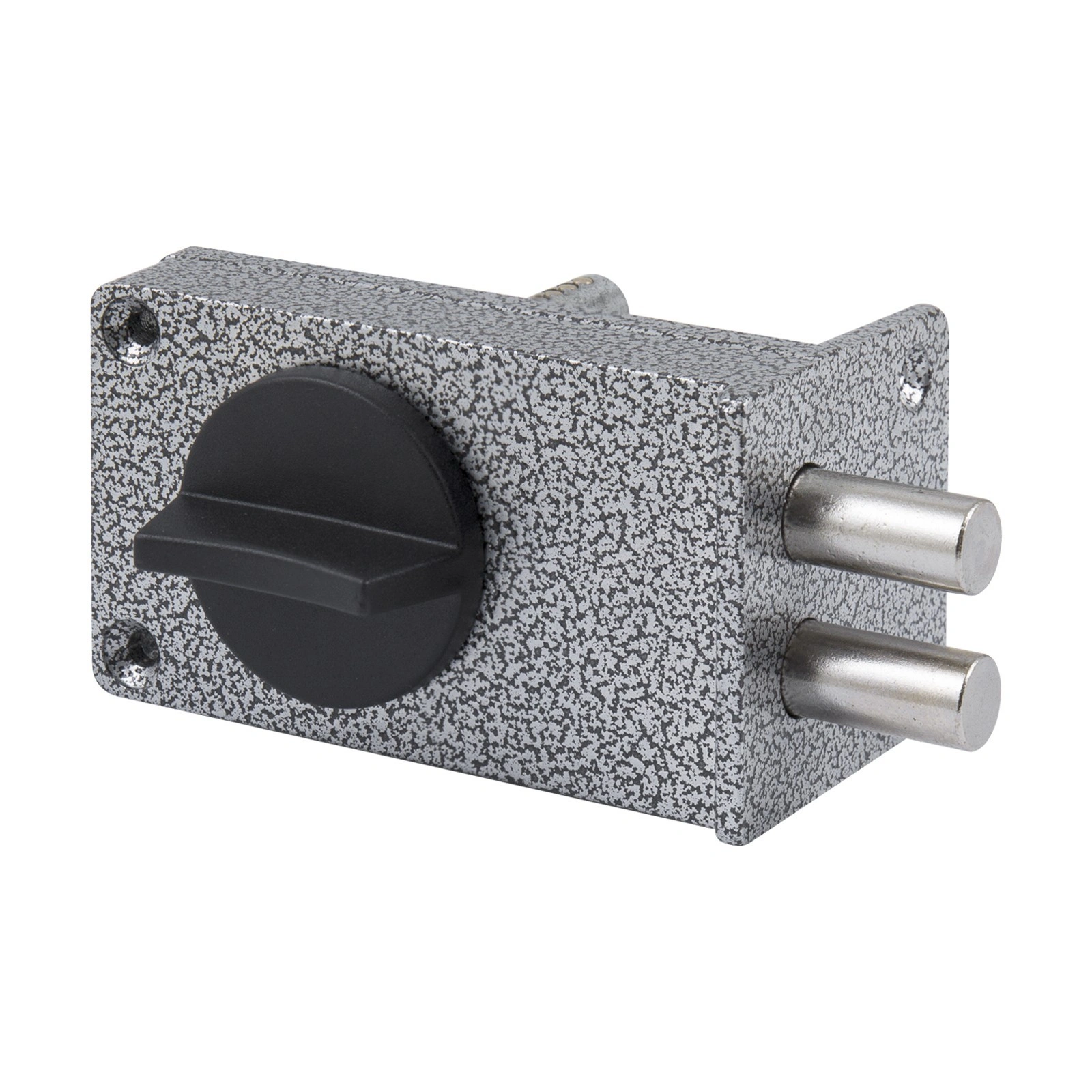 Засов из двух цилиндрических ригелей диаметром 12 мм, с максимальным вылетом 24 мм. Удаление ключевого отверстия - 60 мм.