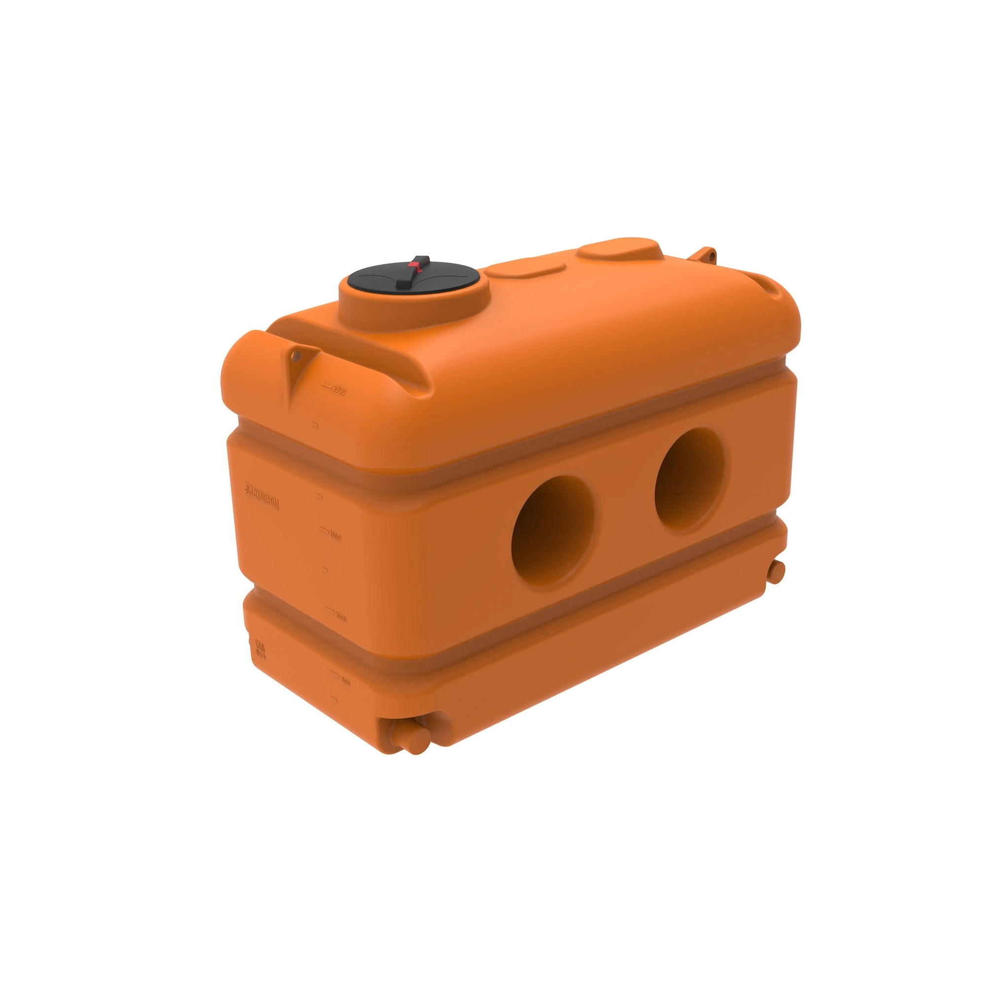 Емкость может поставляться как без патрубков, так и с цельнолитыми патрубками D 100 мм, позволяющими сообщать между собой соседние емкости с помощью резиновых манжет. При этом отсутствуют выступающие части и трубопроводы при соединении резервуаров.