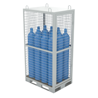 Предназначена для хранения и перевозки баллонов с кислородом. Конструкция включает одно отделение с дверцей, которая запирается на задвижку. Поставляется в готовом к использованию виде.