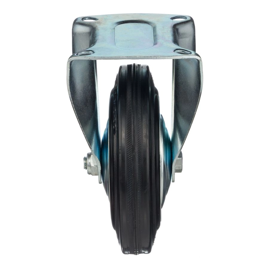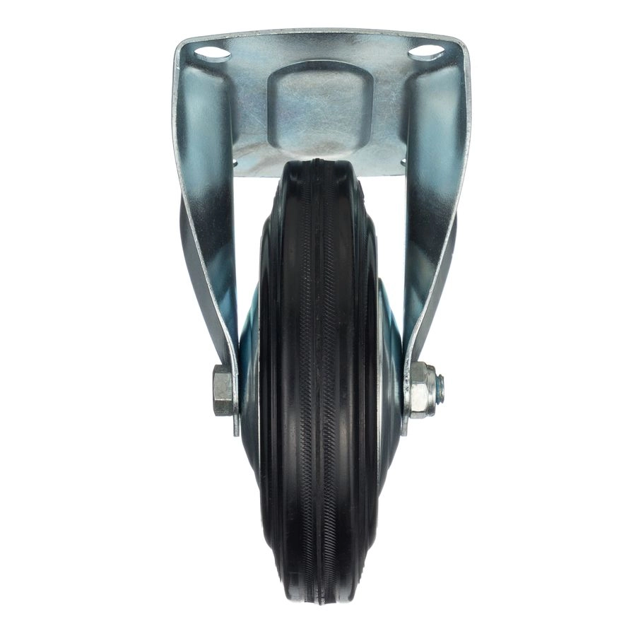Колесо неповоротное 4002-160, диаметр 160мм., грузоподъемность 145кг. Колеса из черной литой резины, центр из двух гальванизированных дисков из штампованной стали. Роликовый (игольчатый) подшипник расположен в углублении, выдавленном под прессом, и содержит цилиндрические ролики подшипника. Неповоротный кронштейн изготовлен прессованием из листовой стали. Возможно применение на относительно грубых полах складов, заводов, производственных и строительных площадках. Данные колеса можно использовать на неровных поверхностях, во влажной окружающей среде и использовании вне помещения, не рекомендуется применять в среде с органическими растворителями, хлорированными веществами, гидрокарбонатами и минеральными маслами. Температура эксплуатации от -20 до +70С.