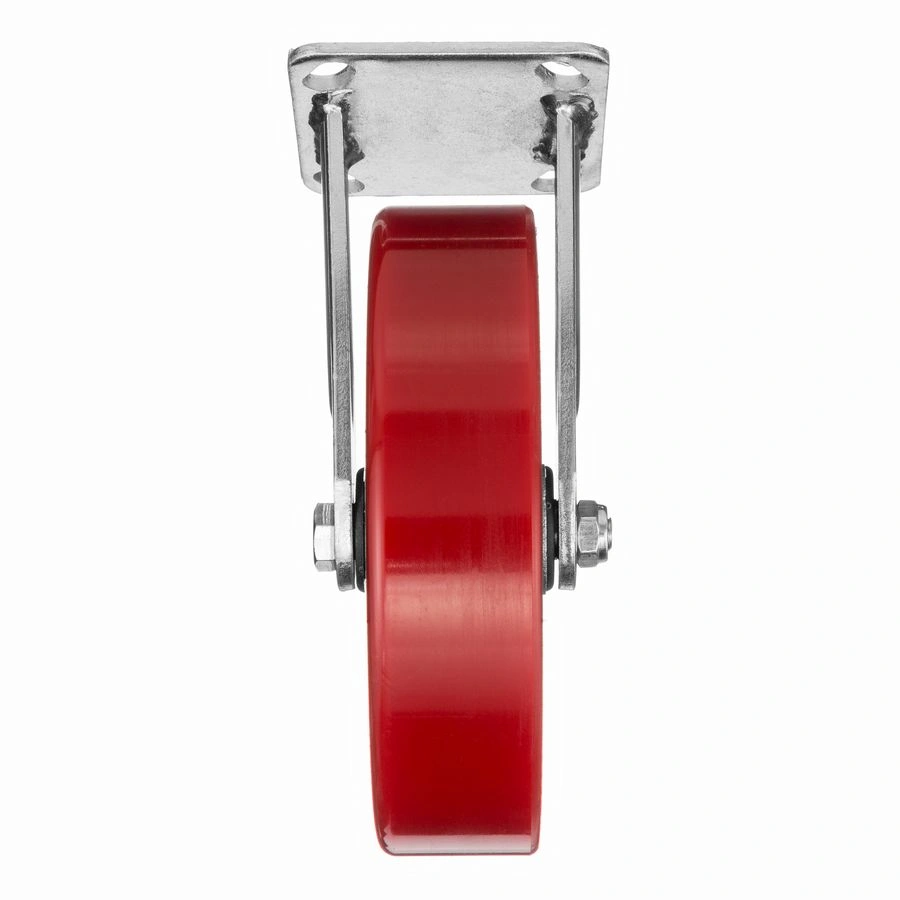 Колесо 1041-200, диаметр 200мм., чугун или полиуретан, неповоротное, игольчатый подшипник. Грузоподъемность 460кг. Колесо полиуретановое, центр из литого чугуна. В оси колеса-игольчатый подшипник. Стойкий к боковым ударам неповоротный кронштейн. Наличие масленки позволяет периодически обслуживать подшипник оси колеса. Крепление площадка под 4 болта. Колеса полиуретановые с чугунным сердечником широко применяются на бетонных полах преимущественно внутри помещений. Широко используются на тележках, строительных лесах и другом оборудовании, где требуется высокая грузоподъемность. При длительном нахождении под большой нагрузкой не деформируются. Возможно использование вне помещении на твердых покрытиях. Температура эксплуатации от -20 до +50С.