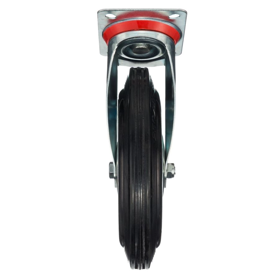 Колесо поворотное 4001-250, диаметр 250мм., грузоподъемность 210кг. Колеса из черной литой резины, центр из двух гальванизированных дисков из штампованной стали. Роликовый (игольчатый) подшипник расположен в углублении, выдавленном под прессом, и содержит цилиндрические ролики подшипника. Кронштейн изготовлен прессованием из листовой стали. В поворотном узле двухрядный шарикоподшипник. Возможно применение на относительно грубых полах складов, заводов, производственных и строительных площадках. Данные колеса можно использовать на неровных поверхностях, во влажной окружающей среде и использовании вне помещения, не рекомендуется применять в среде с органическими растворителями, хлорированными веществами, гидрокарбонатами и минеральными маслами. Температура эксплуатации от -20 до +70С.