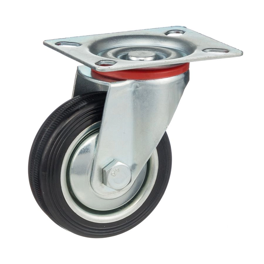 Колесо поворотное 4001-75, диаметр 75мм., грузоподъемность 50кг. Колеса из черной литой резины, центр из двух гальванизированных дисков из штампованной стали. Роликовый (игольчатый) подшипник расположен в углублении, выдавленном под прессом, и содержит цилиндрические ролики подшипника. Кронштейн изготовлен прессованием из листовой стали. В поворотном узле двухрядный шарикоподшипник. Возможно применение на относительно грубых полах складов, заводов, производственных и строительных площадках. Данные колеса можно использовать на неровных поверхностях, во влажной окружающей среде и использовании вне помещения, не рекомендуется применять в среде с органическими растворителями, хлорированными веществами, гидрокарбонатами и минеральными маслами. Температура эксплуатации от -20 до +70С.