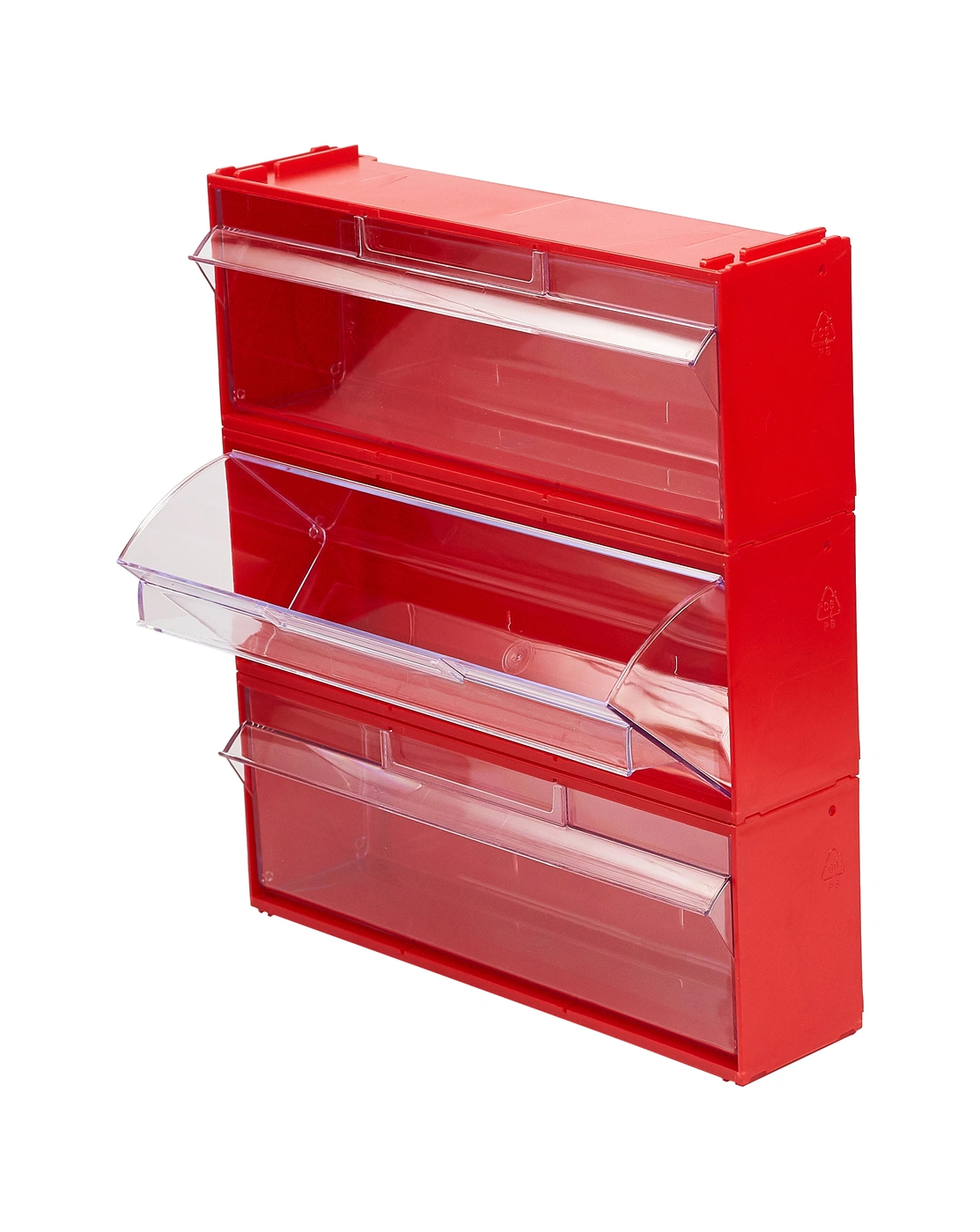 Короб откидной Стелла-техник F-300-1 (300х96х112мм.), красный, прозрачный служит для хранения мелкоштучных предметов. Данная система хранения не подвержена случайному опрокидыванию. Откидная удлиненная ячейка обеспечивает быстрый доступ к необходимым предметам. В случае необходимости полного высыпания или наполнения короб легко извлекается. Полезный внутренний размер ячейки 283х65х70мм. Специальный пластик, из которого выполнен короб, выдерживает значительные нагрузки и обладает оптимальной эластичностью. На основе данных коробов можно сформировать многоярусную систему хранения, выстраивая вертикально. Данный короб, через отверстия на задней стенке, легко можно прикрепить к стене или установить на специальные кронштейны (Артикул: Кронштейны-FOX-750). Обзорность содержимого сквозь прозрачные внутренние ячейки, наличие отсека для информационных бирок, легкое извлечение внутреннего короба для опустошения и наполнения, все это является неоспоримым преимуществом откидных коробов серии F. Температура эксплуатации от -10 до +70С.