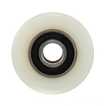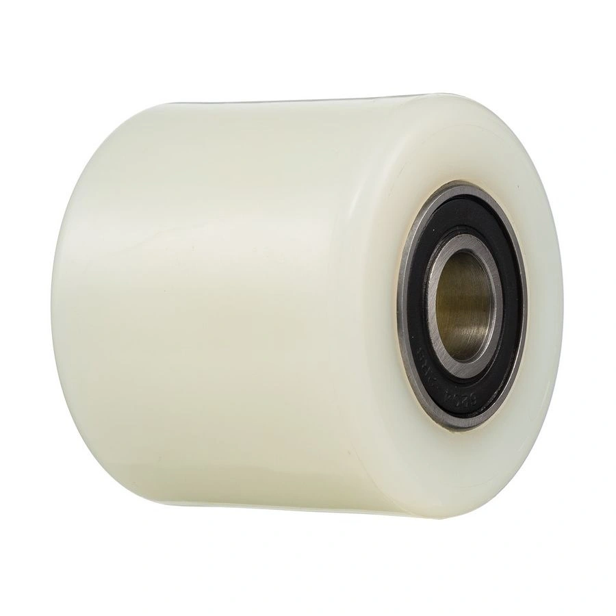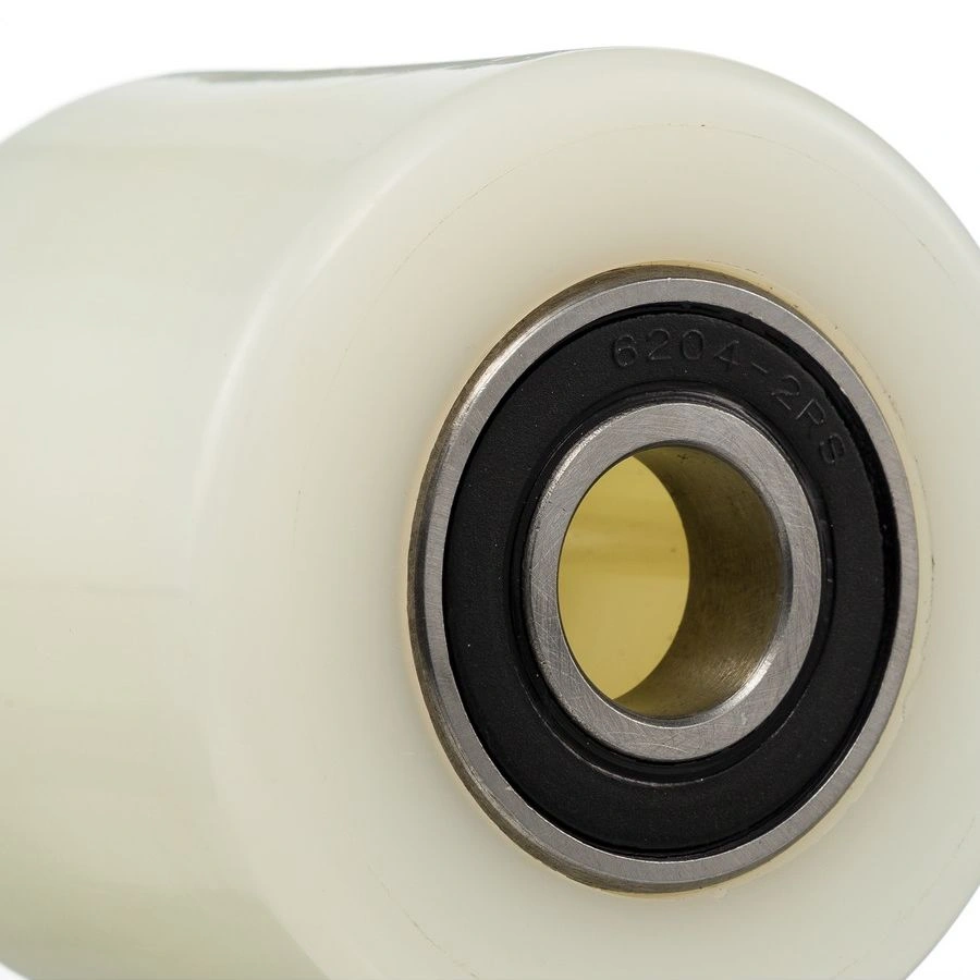 Ролик R-02-1-70, диаметр 80мм, ширина 70мм., полиамид, шариковый подшипник ось 20мм., грузоподъемность 400кг. Ролик для гидравлических тележек из полиамида является отличным решением для установки на гидравлические тележки в качестве подвилочного. Полиамид является недорогим и проверенным решением для использования на гидравлических тележках и ручных штабелёрах. Он легко катится, имеет большой запас прочности и износостойкости. Отлично подходит для предприятий и организаций с агрессивной средой эксплуатации, и предприятиях пищевой промышленности. Подходит для частой мойки. Температурный режим эксплуатации от -30 до +80С.