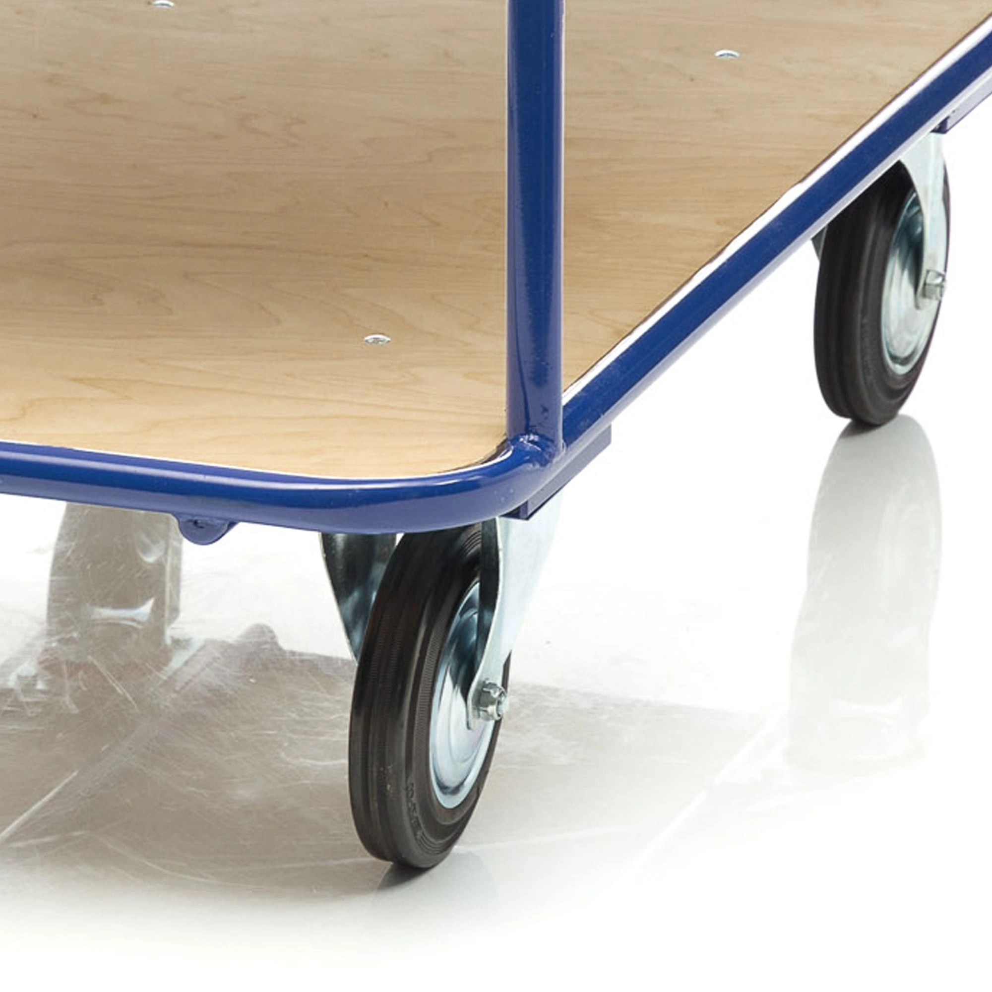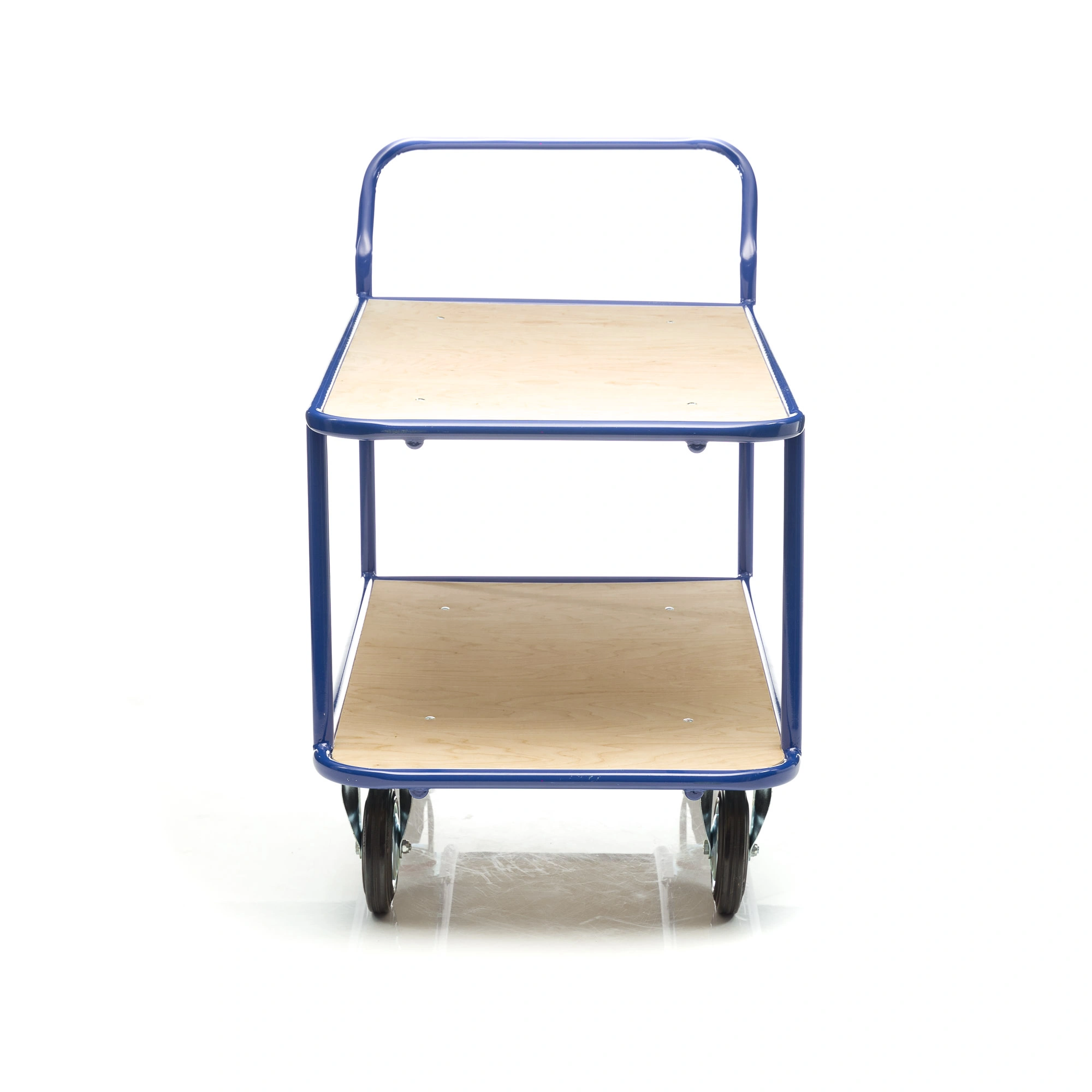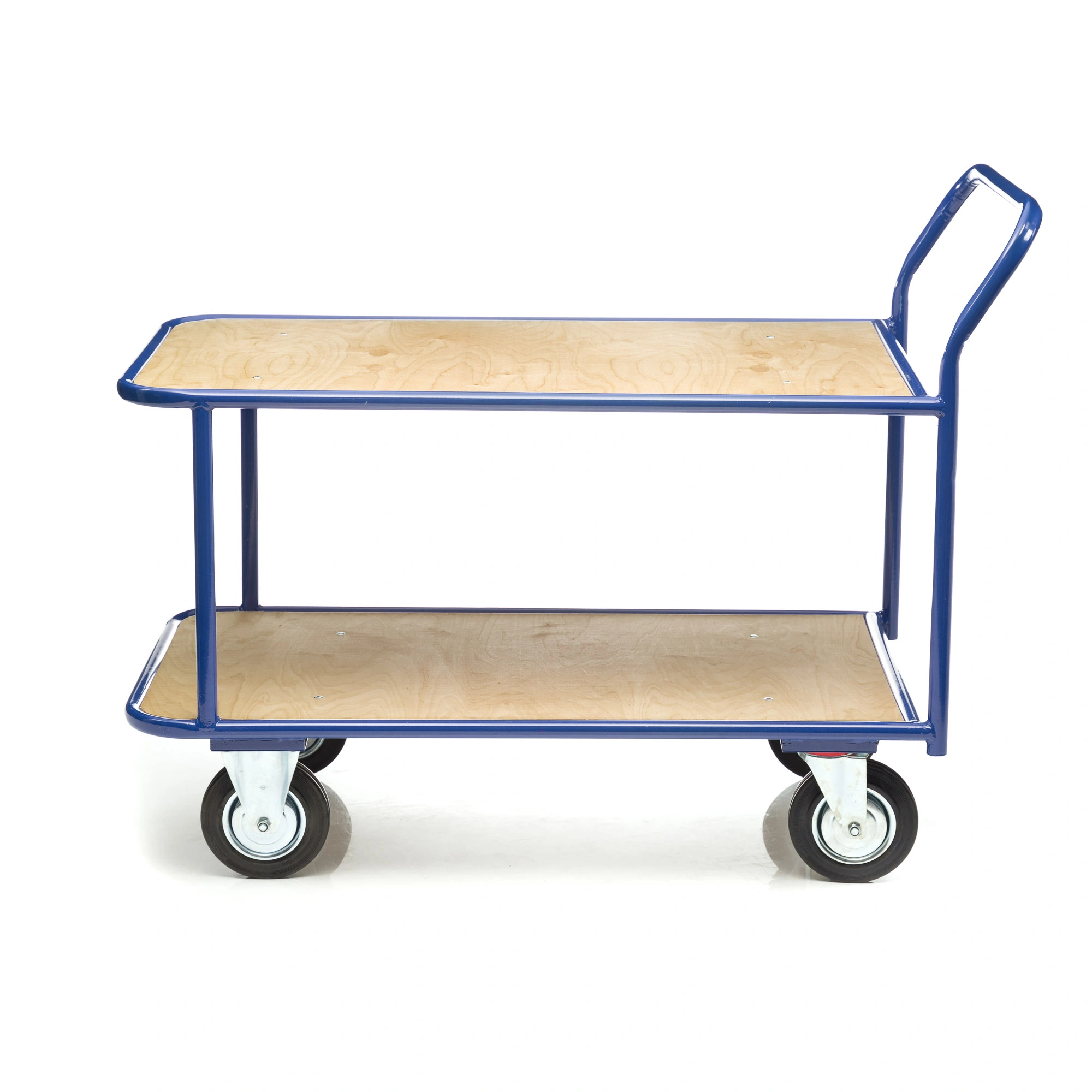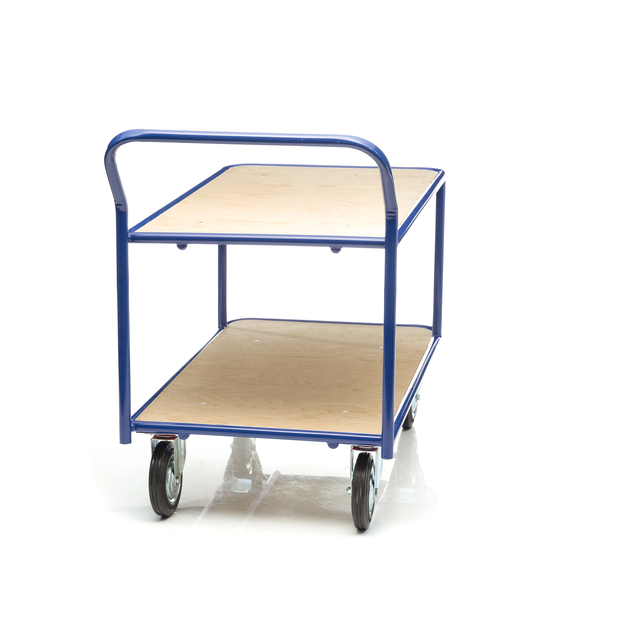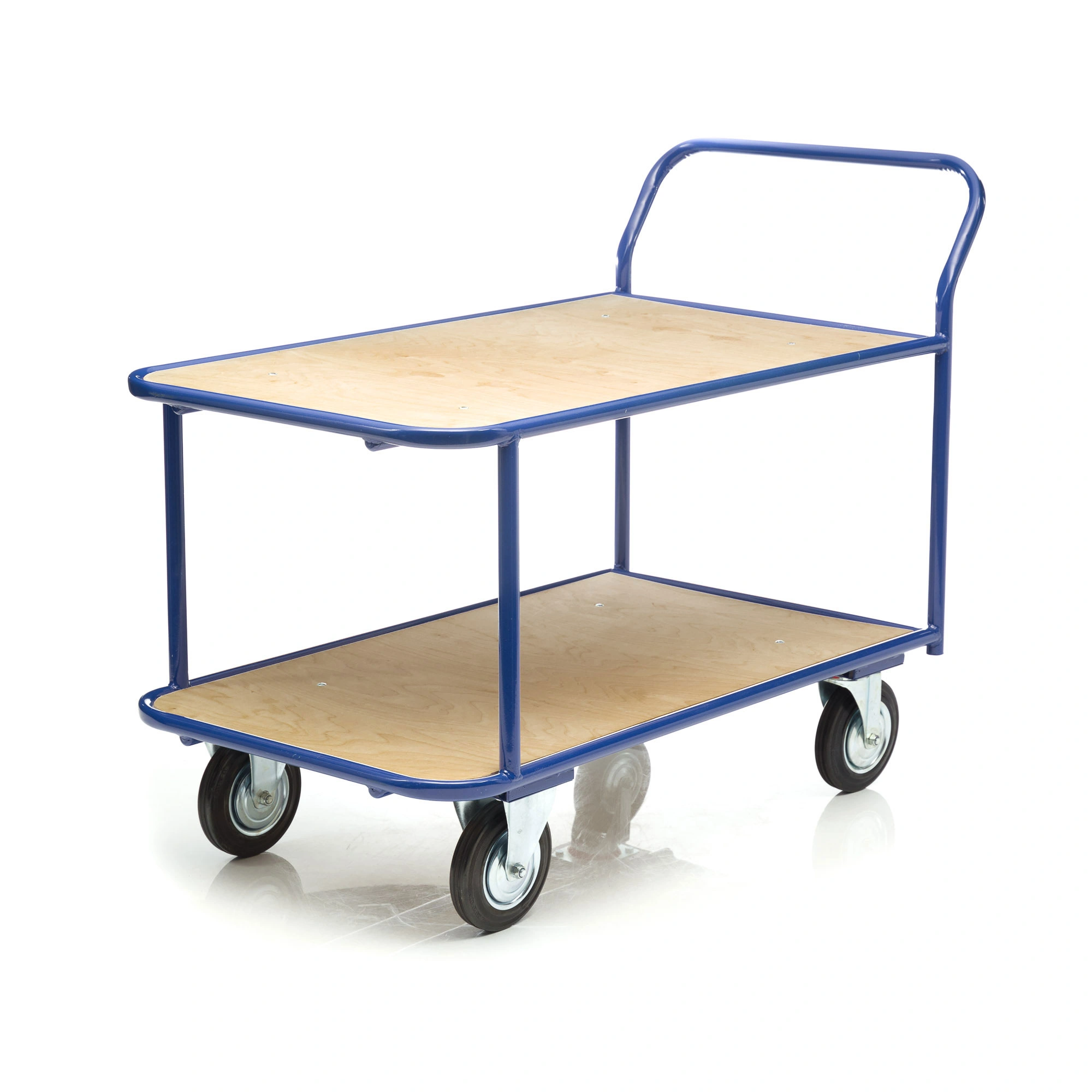 Платформенная двухъярусная 4-х колесная тележка КП-2-200-К используется для перевозки малогабаритных грузов. Платформы имеют металлический каркас накрытый фанерой толщиной 10мм., размер платформы 700х1200мм., расстояние между ярусами 480мм., количество ярусов 2 шт, габаритная высота 1050мм. Покрытие металлических деталей тележки полимерное, цвет - синий. Тележка широко используется на складах, в торговых павильонах, а также в гостиничном и ресторанном бизнесе. Две платформы позволяют удобно расположить перевозимые предметы.Тележка комплектуется двумя поворотными и двумя неповоротными колесами, диаметром 200мм., изготовленными из высококачественной литой резины, комплектом крепежа. Грузоподъемность до 550кг.