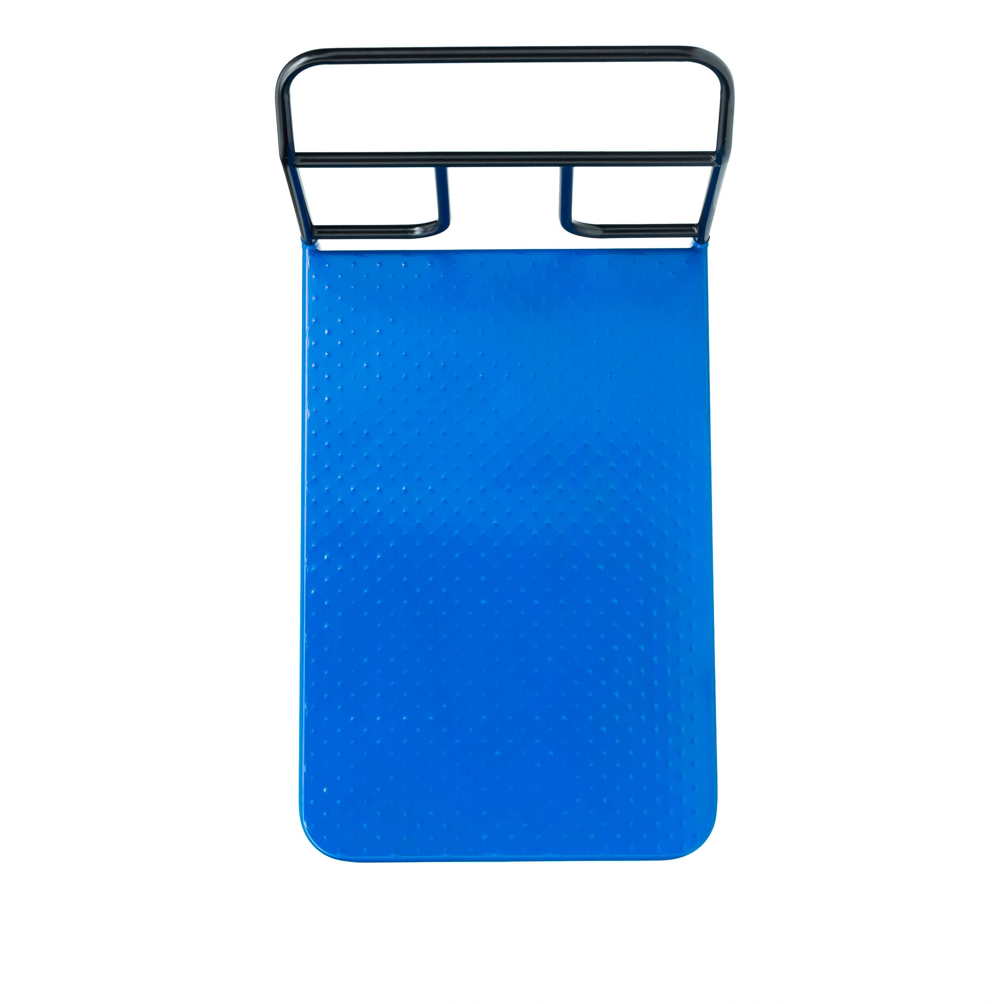 На платформе синего цвета допускается размещать до 300 кг грузов. Тележка приводится в движение за счет толкания прочной и удобной ручки черного цвета с болтовым креплением. Металлические части устройства подвергаются полимерной порошковой обработке, что защищает конструкцию от влаги, пыли, ветра, солнечных лучей и пр.