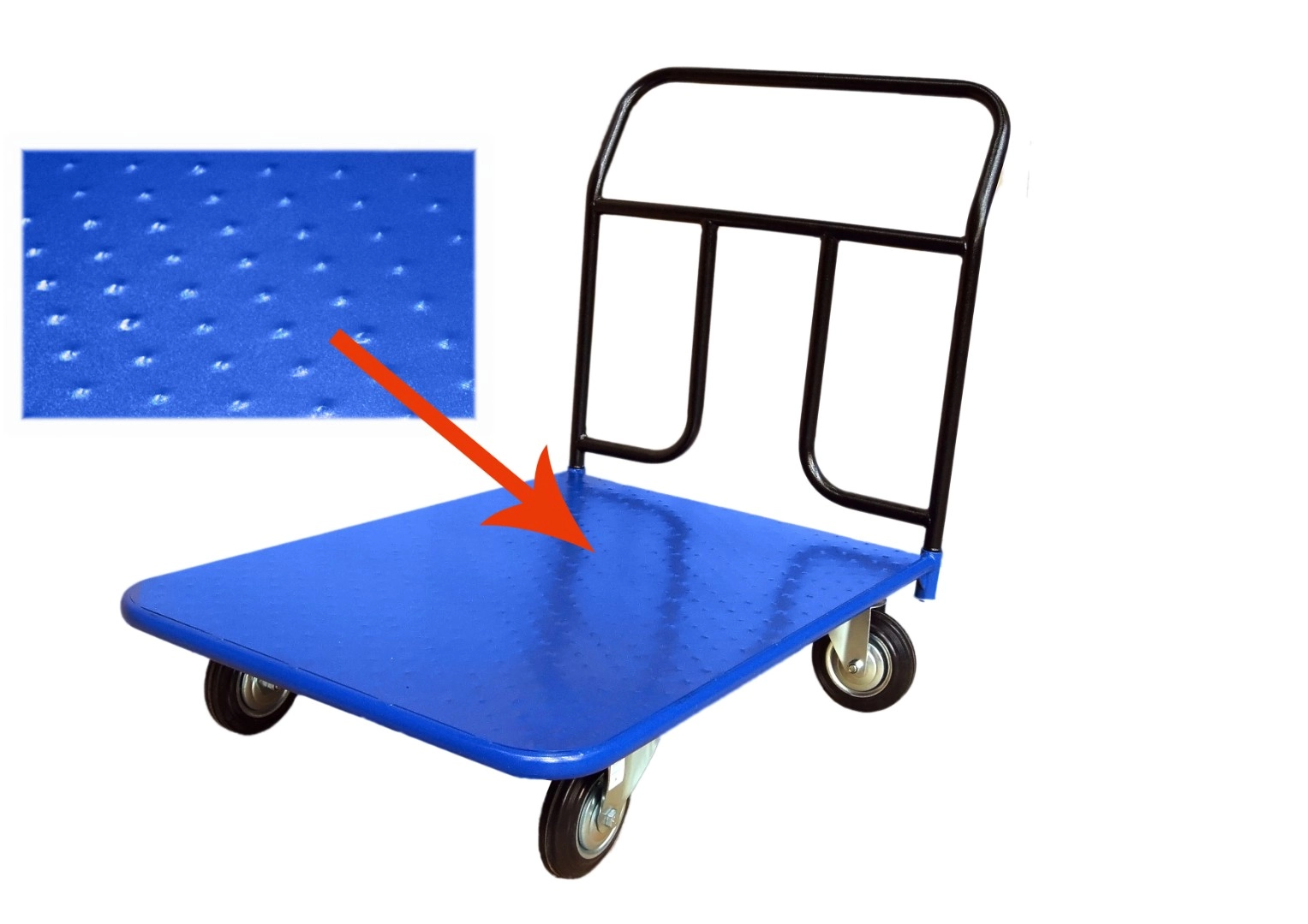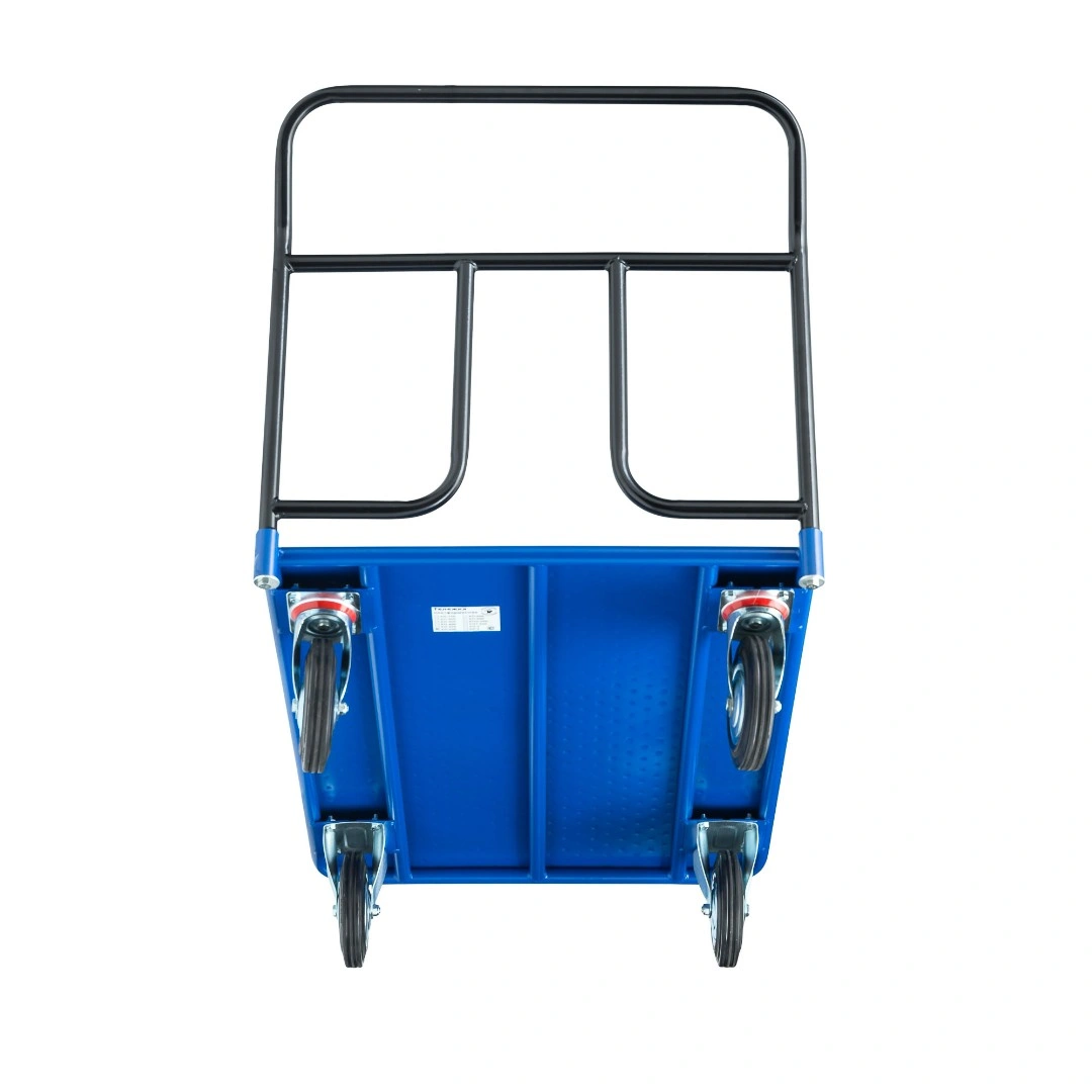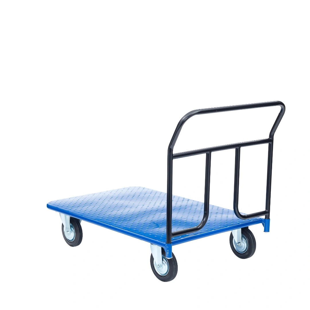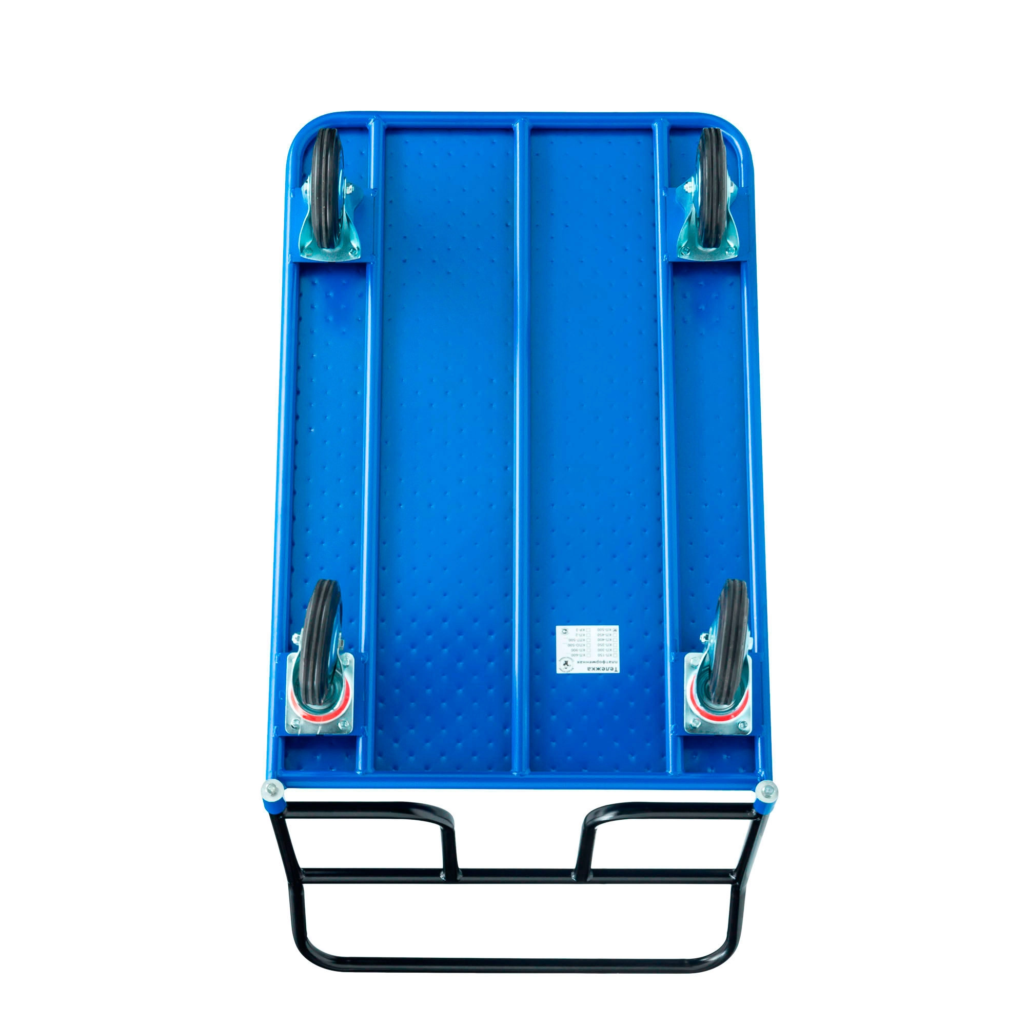 Платформенная 4-х колесная тележка КП-400-150-И используется для перемещения различных грузов в складских помещениях. Ручка крепится к платформе болтами, для компактного хранения можно снять, высота ручки 750мм. Платформа имеет уникальную рельефную, полимерную, противоскользящую поверхность, размером 700х1000мм. Цвет - синий, шагрень. Тележка комплектуется: метизами для крепления, двумя поворотными и двумя неповоротными промышленными колесами, диаметром 150мм., из черной стандартной резины, от всемирно известного, ведущего итальянского производителя Tellure Rota. Грузоподъемность до 450кг.