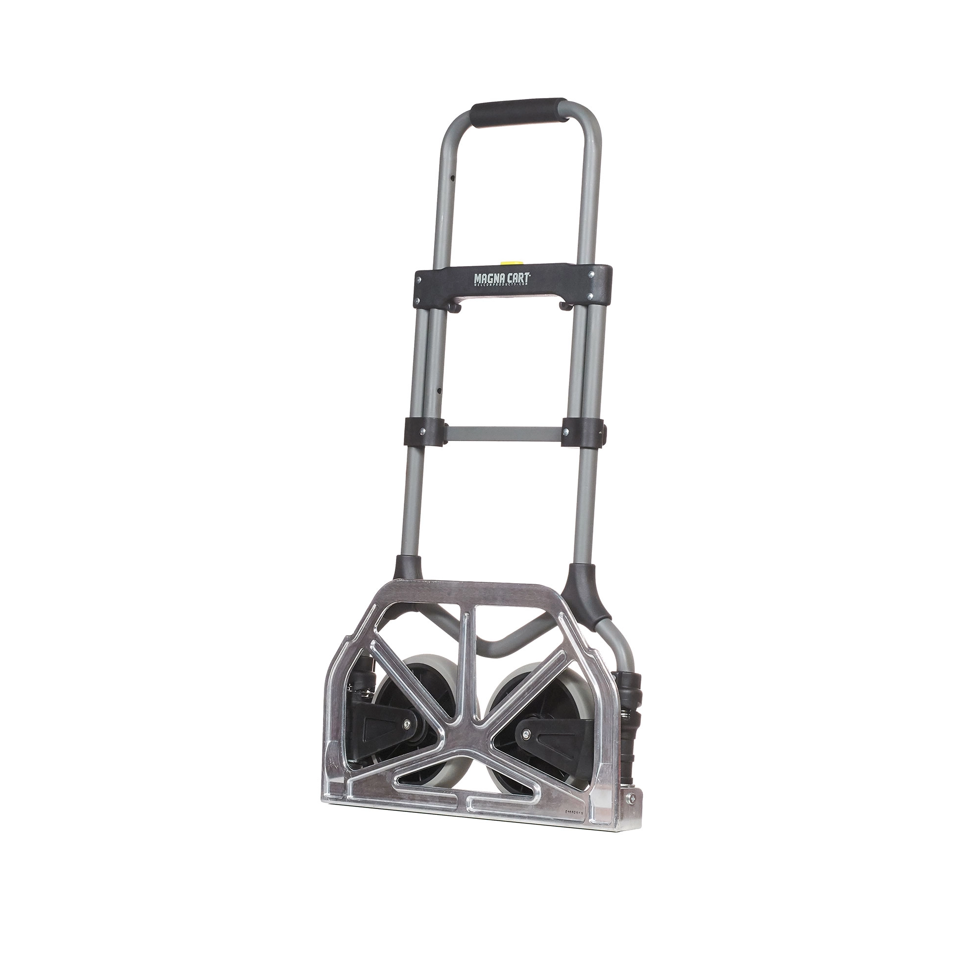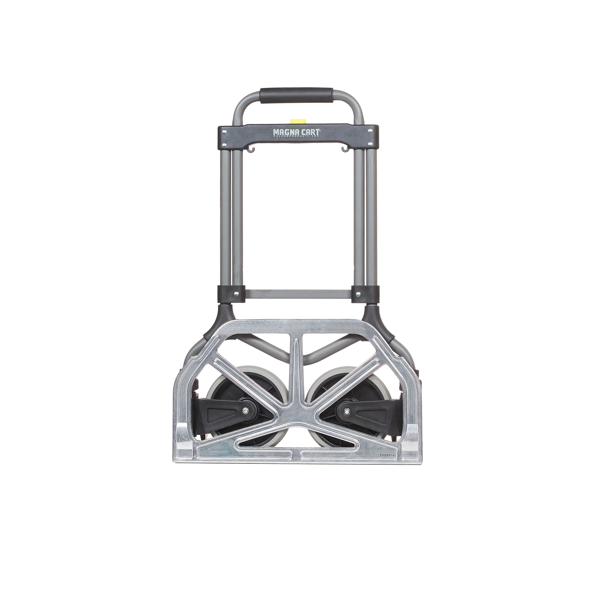 Складная двухколесная тележка MAGNA CART MC2 очень компактна, вынослива и легко поместится в багажник автомобиля или на полку в самолете. Прочный стальной корпус позволяет перемещать различные грузы весом до 90кг. Тележка, при желании, моментально раскладывается и собирается за счет сложения телескопической ручки и колес вдоль корпуса. Размер площадки 279х387мм., максимальная высота ручки 980мм., диаметр колес 180мм. Складные тележки идеально подходят для транспортировки выставочного оборудования, обслуживания маленьких складов и перевозки грузов в домашних условиях или во время путешествий. За счет узкого профиля и компактных размеров технику легко разместить на полке в самолете или багажнике машины.